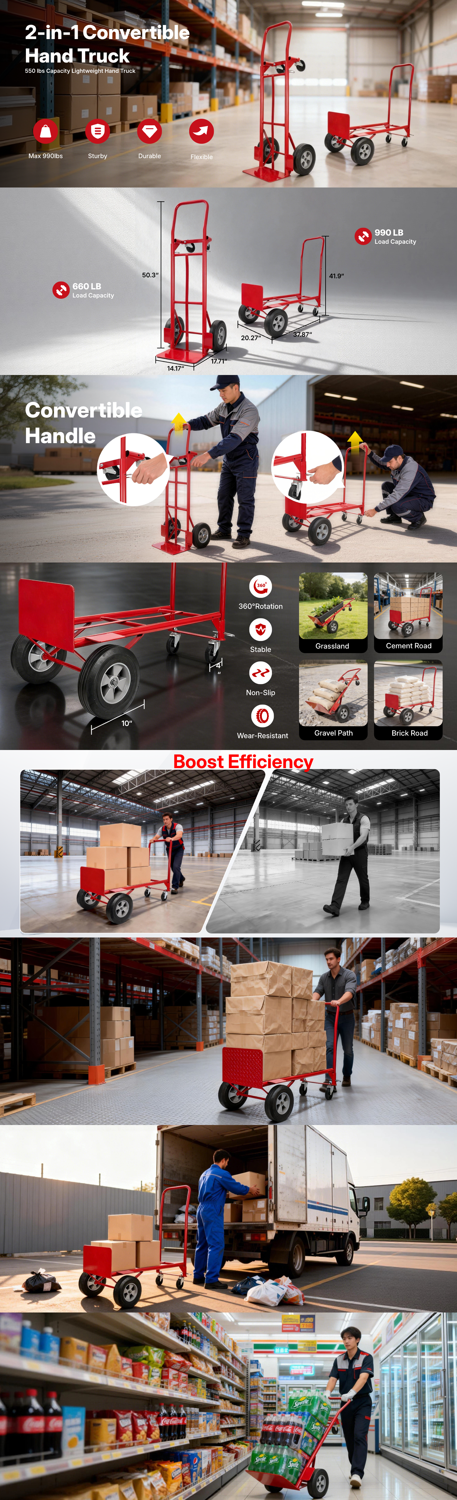 | Wheels Configuration | 10" Solid Rubber | 10" Solid Rubber | 10" Solid Rubber + 2x4" Swivel Casters | 10" Solid Rubber + 2x4" Swivel Casters |