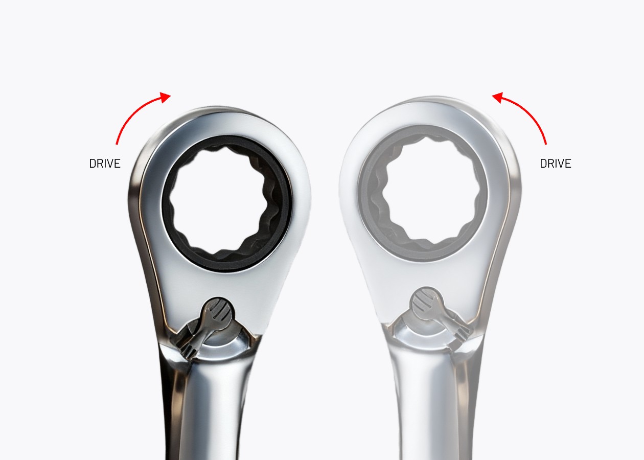 The reversing mechanism allows for quick direction changes without flipping the wrench, which is especially useful in tight spaces.
