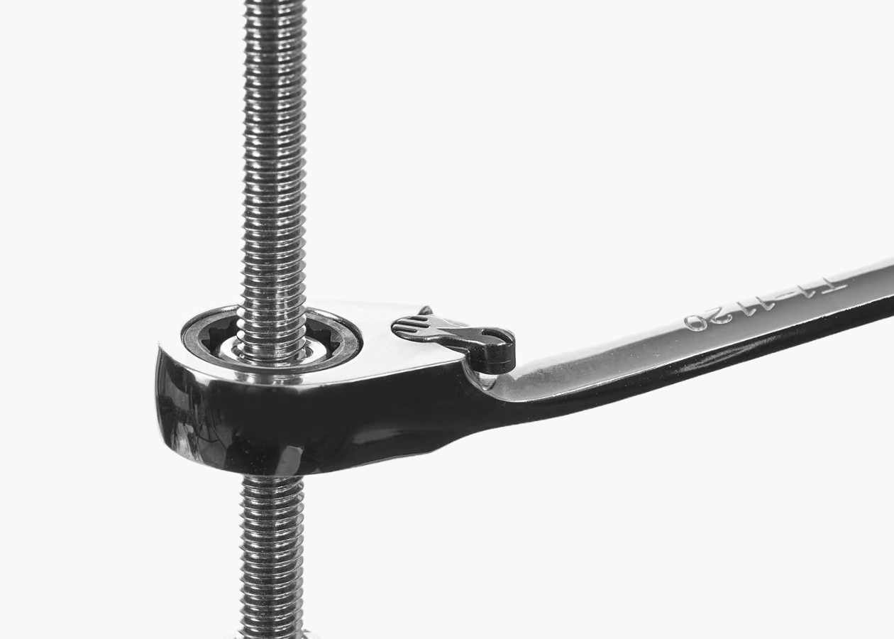 This angle reduces the working swing arc, allowing the wrench to be flipped after each turn to engage the fastener twice as often—making fastening more efficient. It also provides a more secure grip on fasteners, reducing the risk of rounding edges and ensuring a reliable fit with every use.