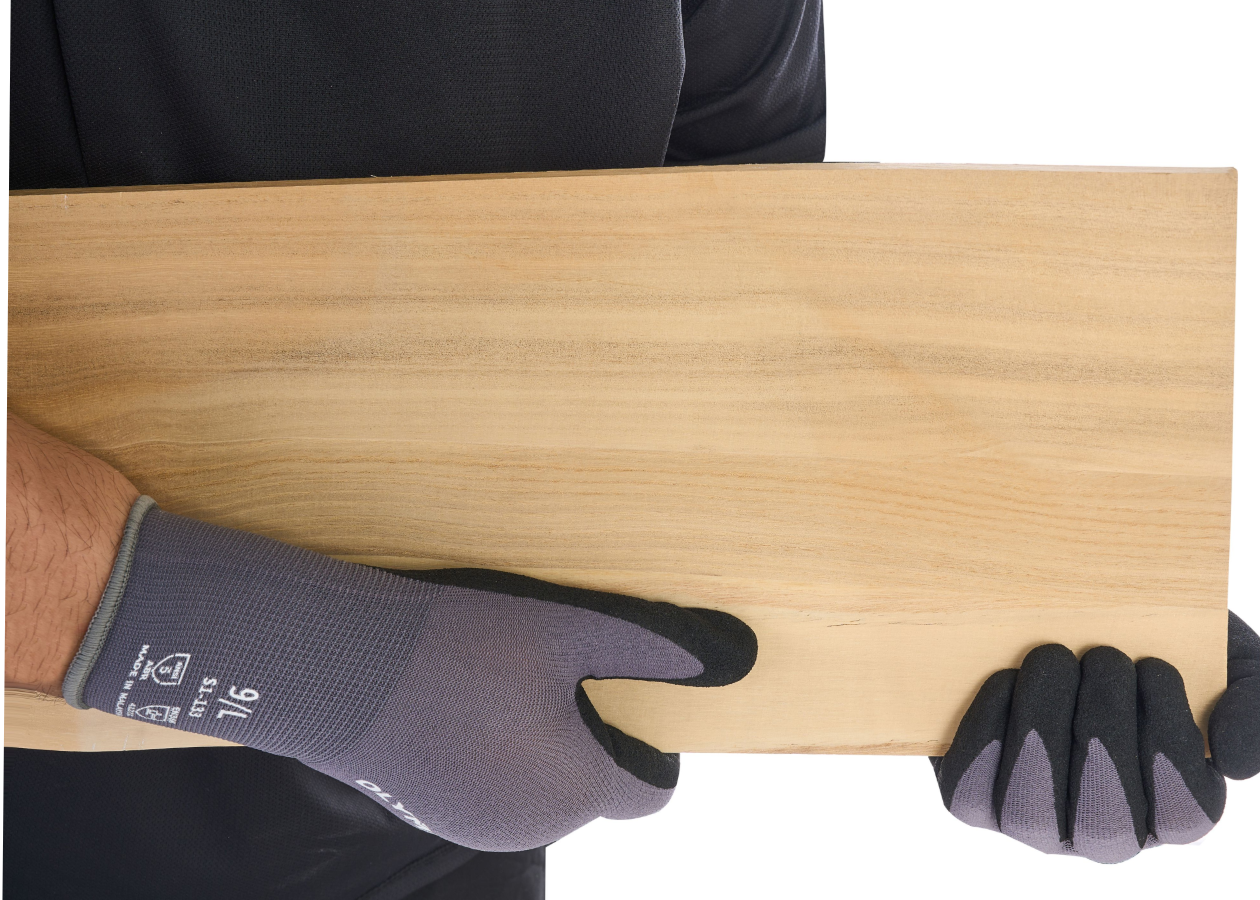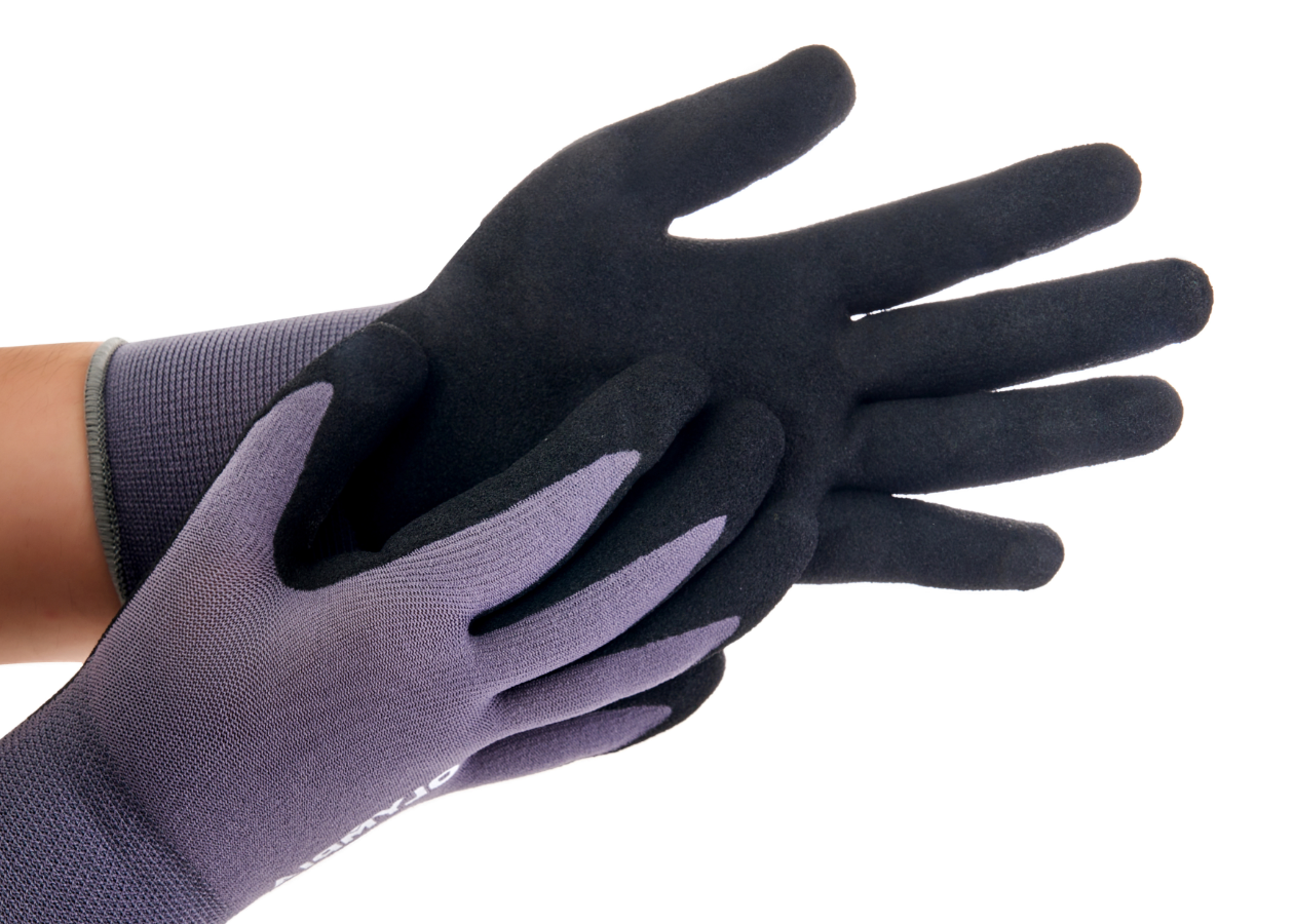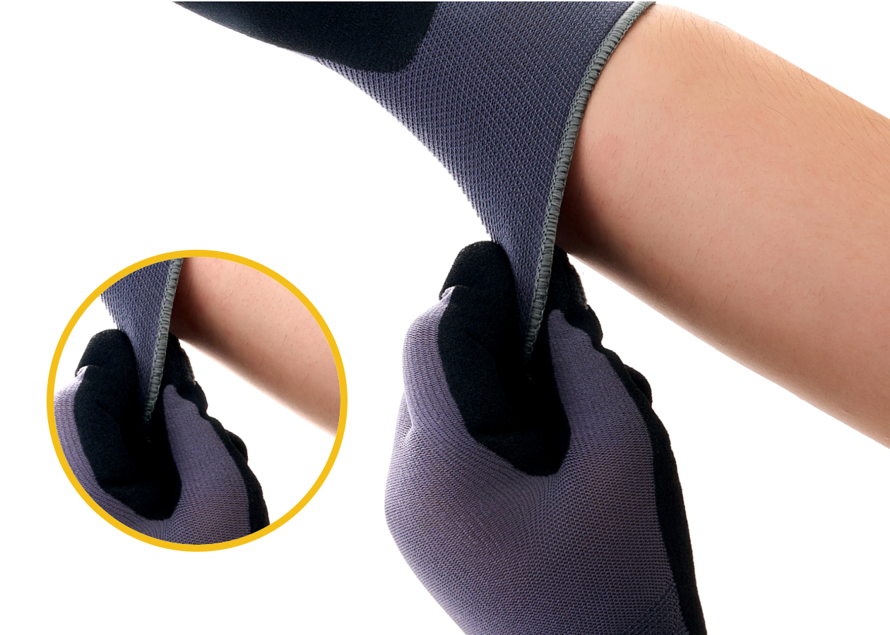 Palm-dipped sandy nitrile coating provides excellent grip performance in both dry and oily conditions.