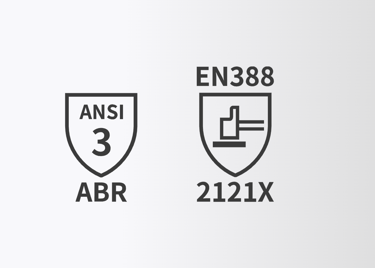 Rated ANSI abrasion level 3, these gloves are compliant with ANSI/ISEA 105-2016 (North America) and EN 388: 2121X (Europe) standards.