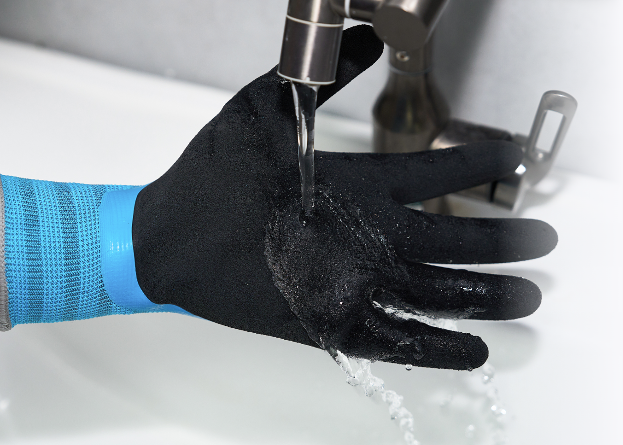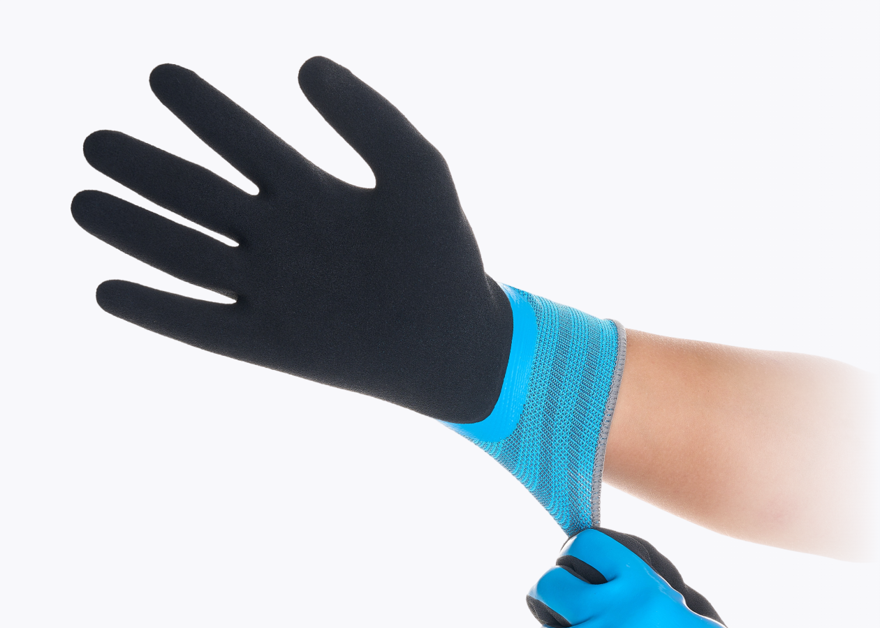 These gloves feature a 3/4 blue latex base layer for waterproof protection and a sandy nitrile palm dip for enhanced grip in wet and dry conditions alike.