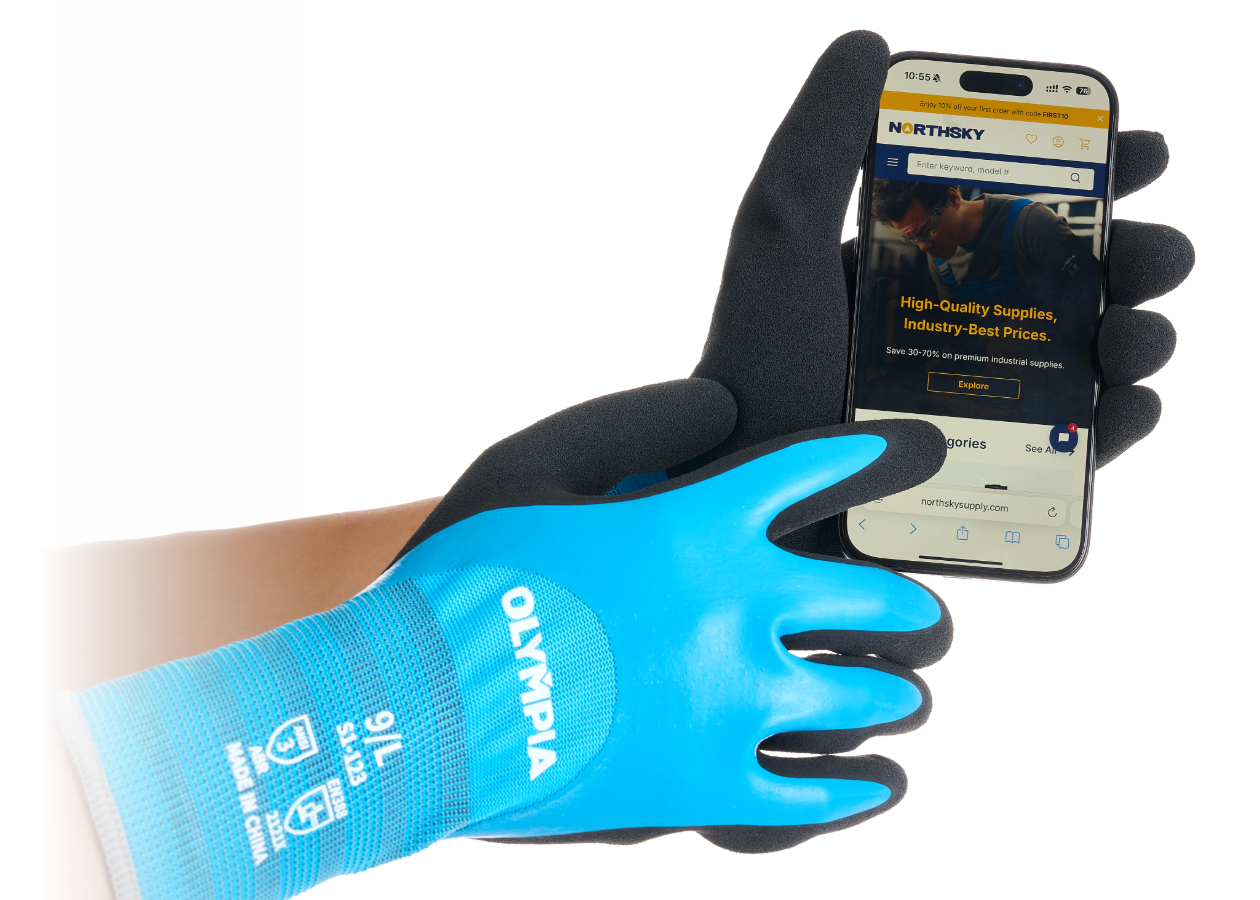 These safety gloves feature full five-finger touchscreen functionality for use of digital devices on the job.