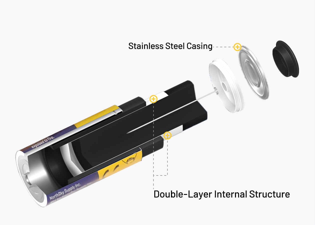 Built with a double-layer internal structure and stainless steel casing, these batteries are leakproof, safeguarding your devices during use and storage.
