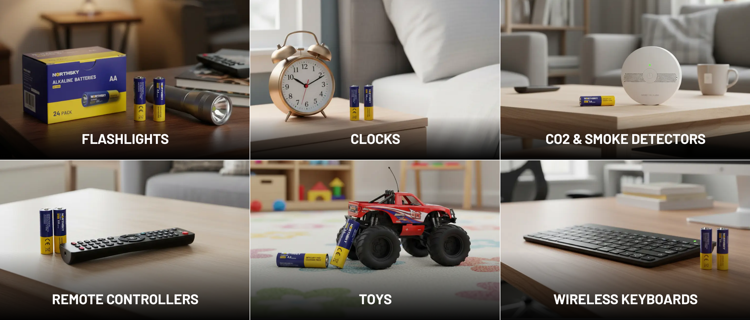 Perfect for everyday high-use household devices and small appliances—flashlights, clocks, CO2 & smoke detectors, remote controllers, toys, wireless keyboards, and more.
