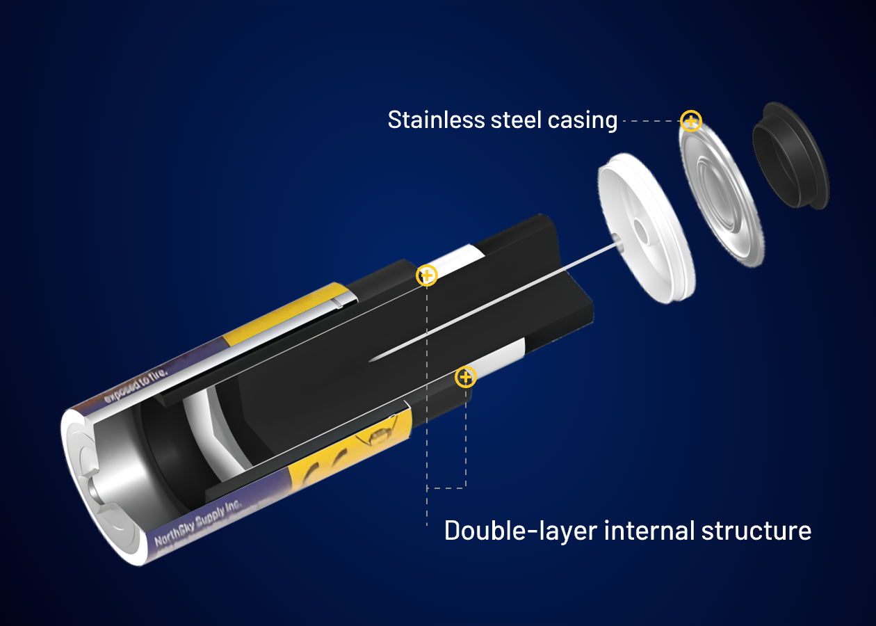Built with a double-layer internal structure and stainless steel casing, these batteries are leakproof, safeguarding your devices during use and storage.