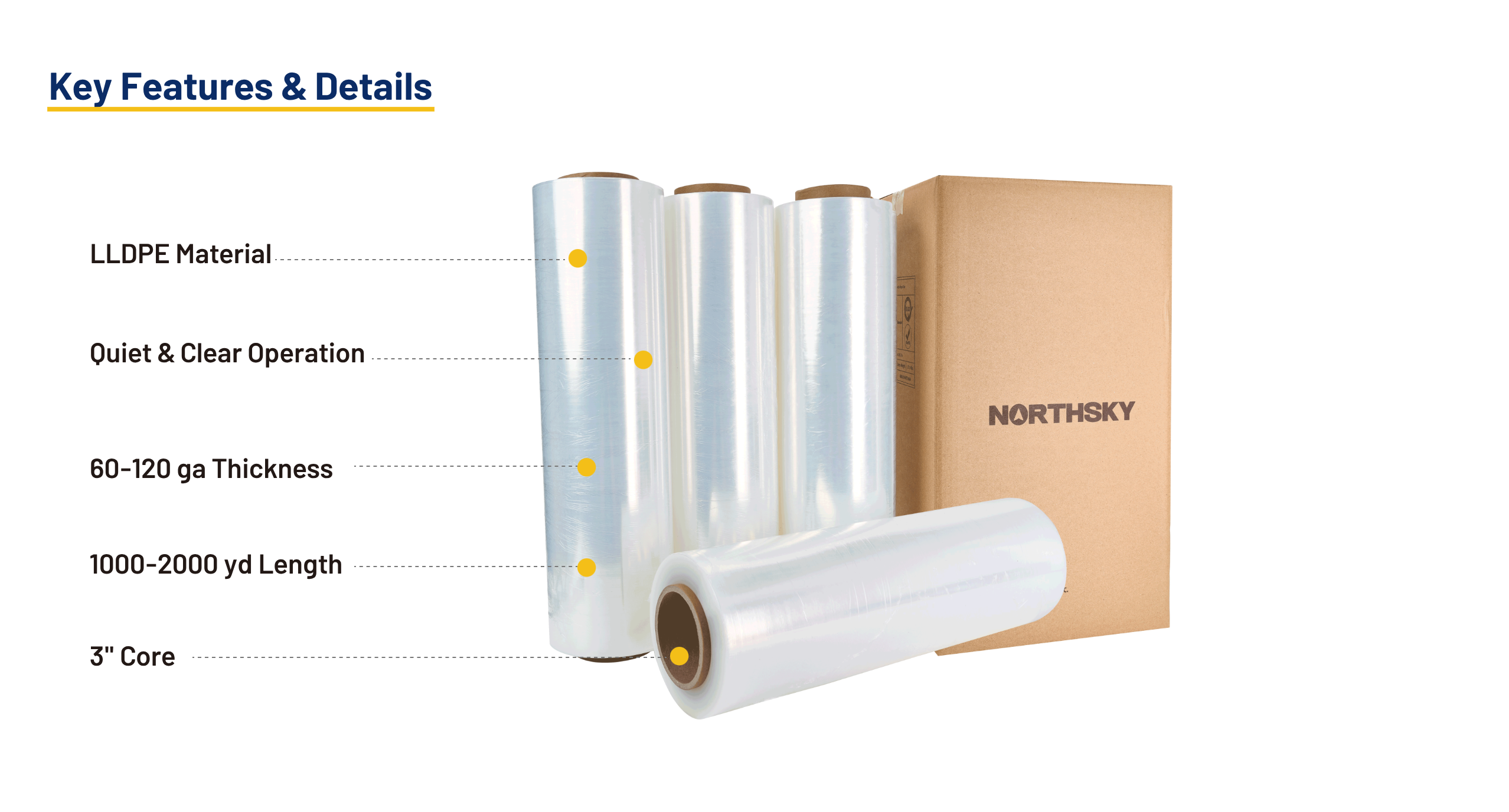 Made from high-quality LLDPE with superior toughness and tear resistance, plus excellent adhesion for secure, protective wrapping.
