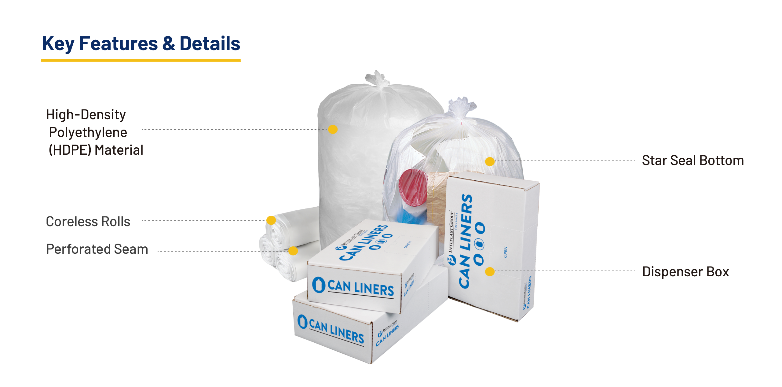 Made from virgin resin for enhanced strength, our HDPE trash liners are ideal for office environments, cafes and restrooms where sharp trash is not deposited.