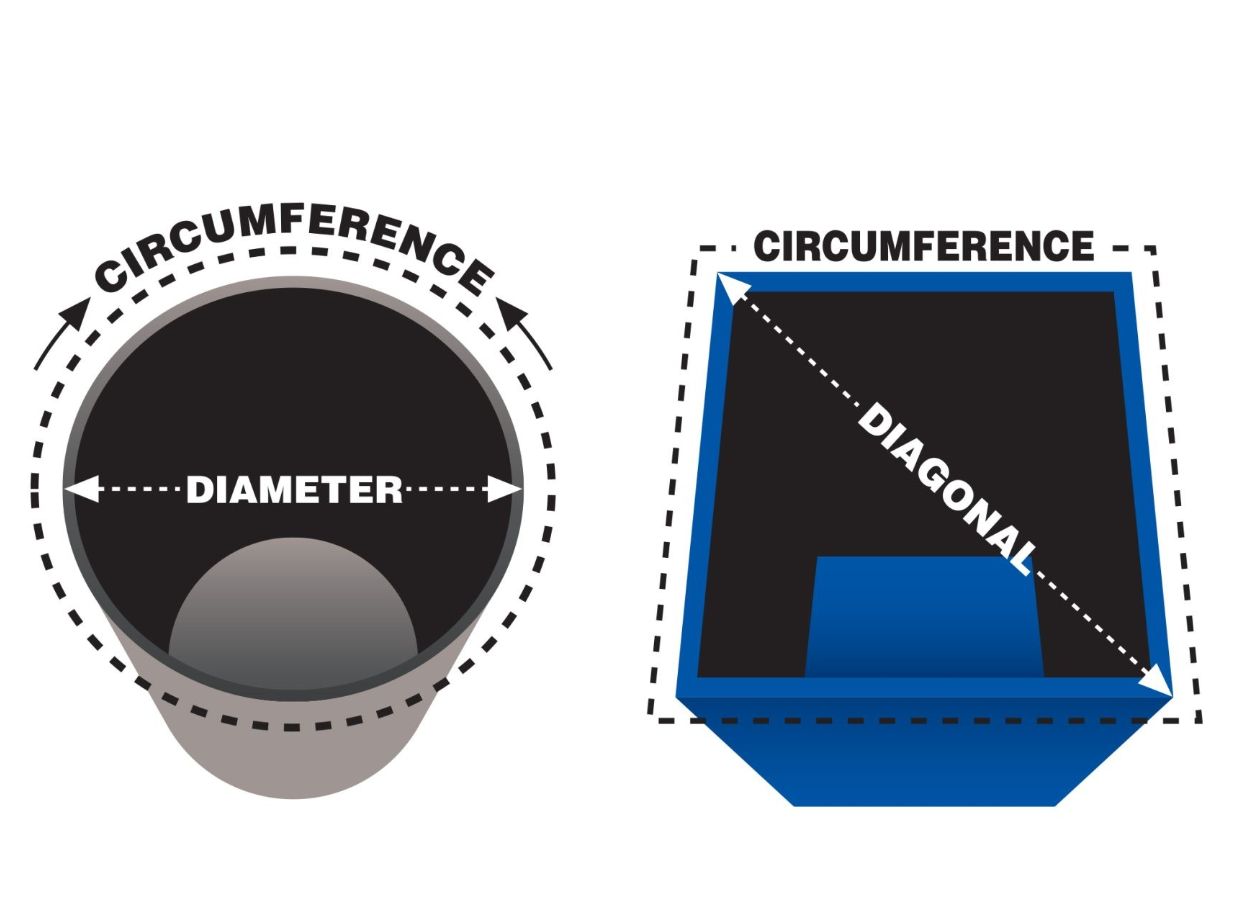 Height of Container + 1/2 of diameter or diagonal of container bottom + 3 inches (for overhang)