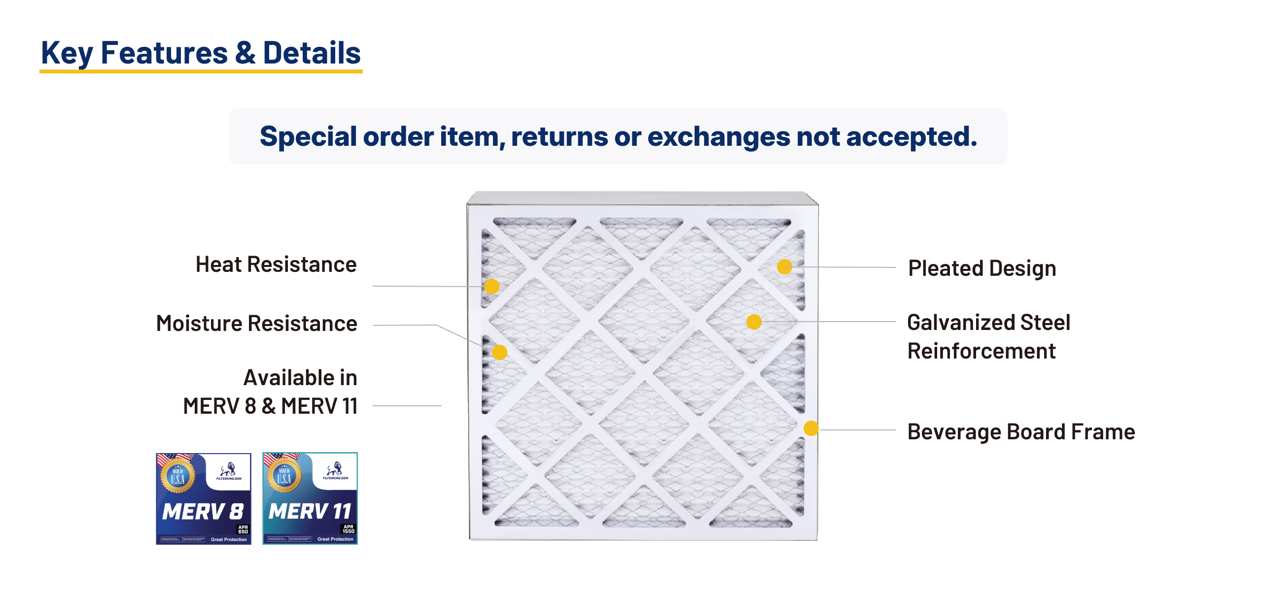 MERV 11: Ideal for households with pets or allergies, and commonly used in commercial buildings and industrial work spaces for dependable air filtering.