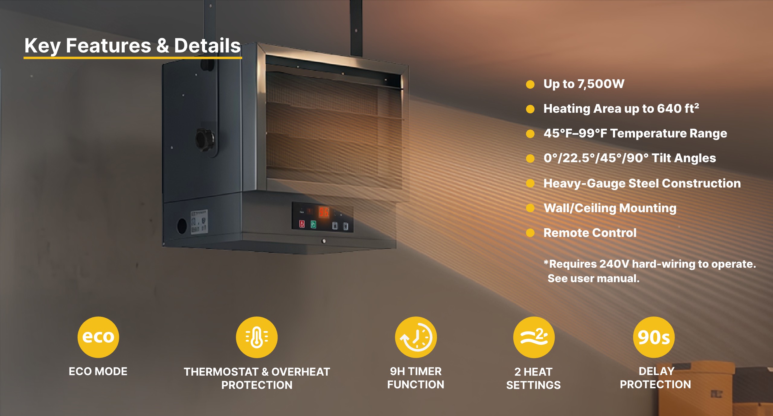 Ideal for garages, workshops, and industrial spaces that need strong, reliable heat in tough environments.