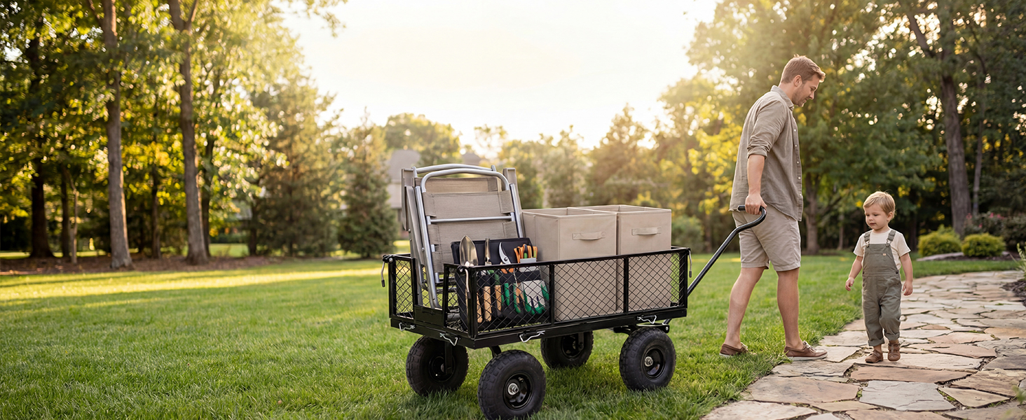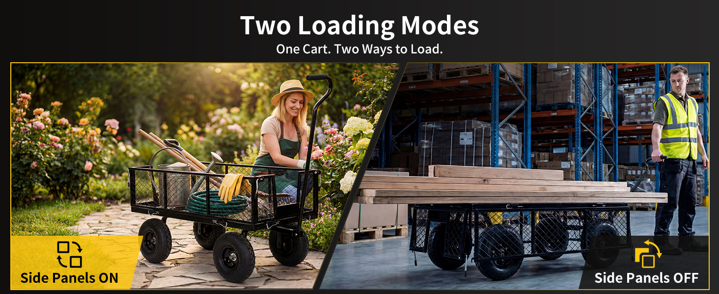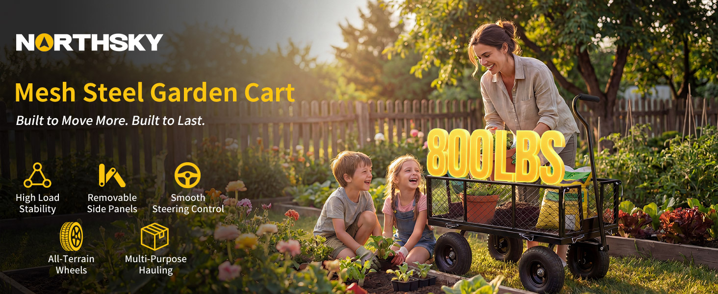 Heavy Duty Mesh Steel Garden Cart, 800lbs Load Capacity, Black